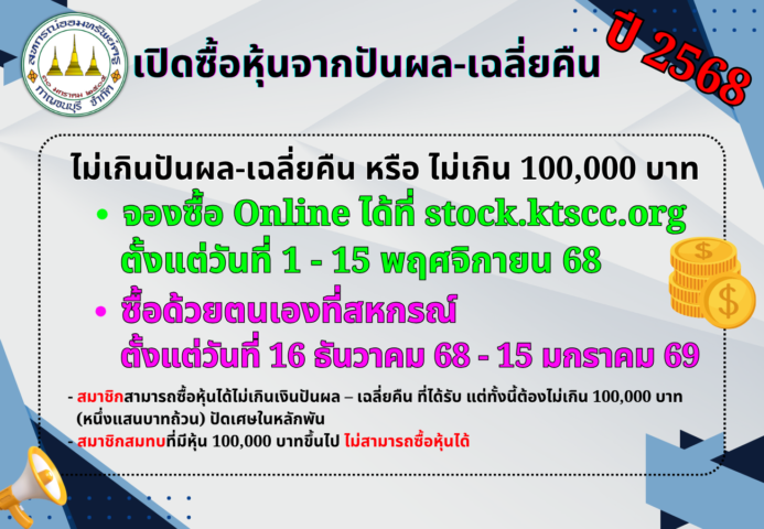 ประกาศเงื่อนไขนำเงินปันผลมาซื้อหุ้น 2568