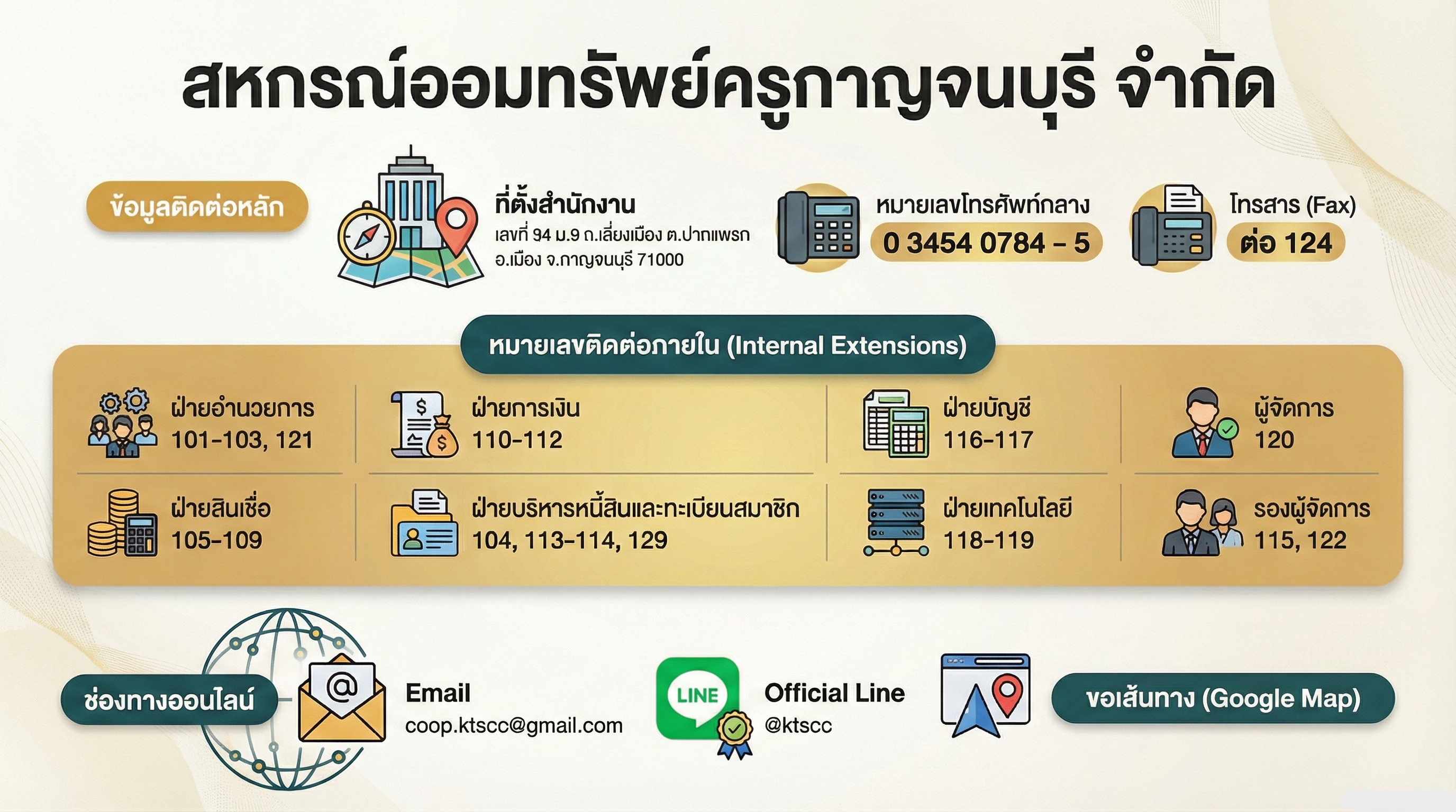 ฝ่ายบริหารหนี้สินและทะเบียนสมาชิก : 104,113-114,129